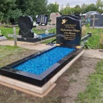 Shown here in polished black granite, this memorial is available in a wide range of colours to complement individual preferences or cemetery regulations. Crafted from high-quality granite, it provides a durable, low-maintenance finish with lasting visual appeal. The clean lines of the surround enhance the overall presentation and allow for bespoke inscriptions, motifs or additional detailing if desired.