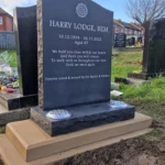 Black Granite Arch Top Headstone with Kerb Surround Installed by Northern Headstones