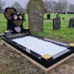 Black Granite Arch Top Headstone with Kerb Surround Installed by Northern Headstones
